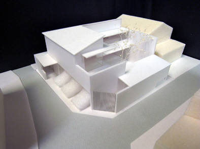 建物をなるべく広く使えるようにする為に、駐車場の上にもボリュームを乗せて
